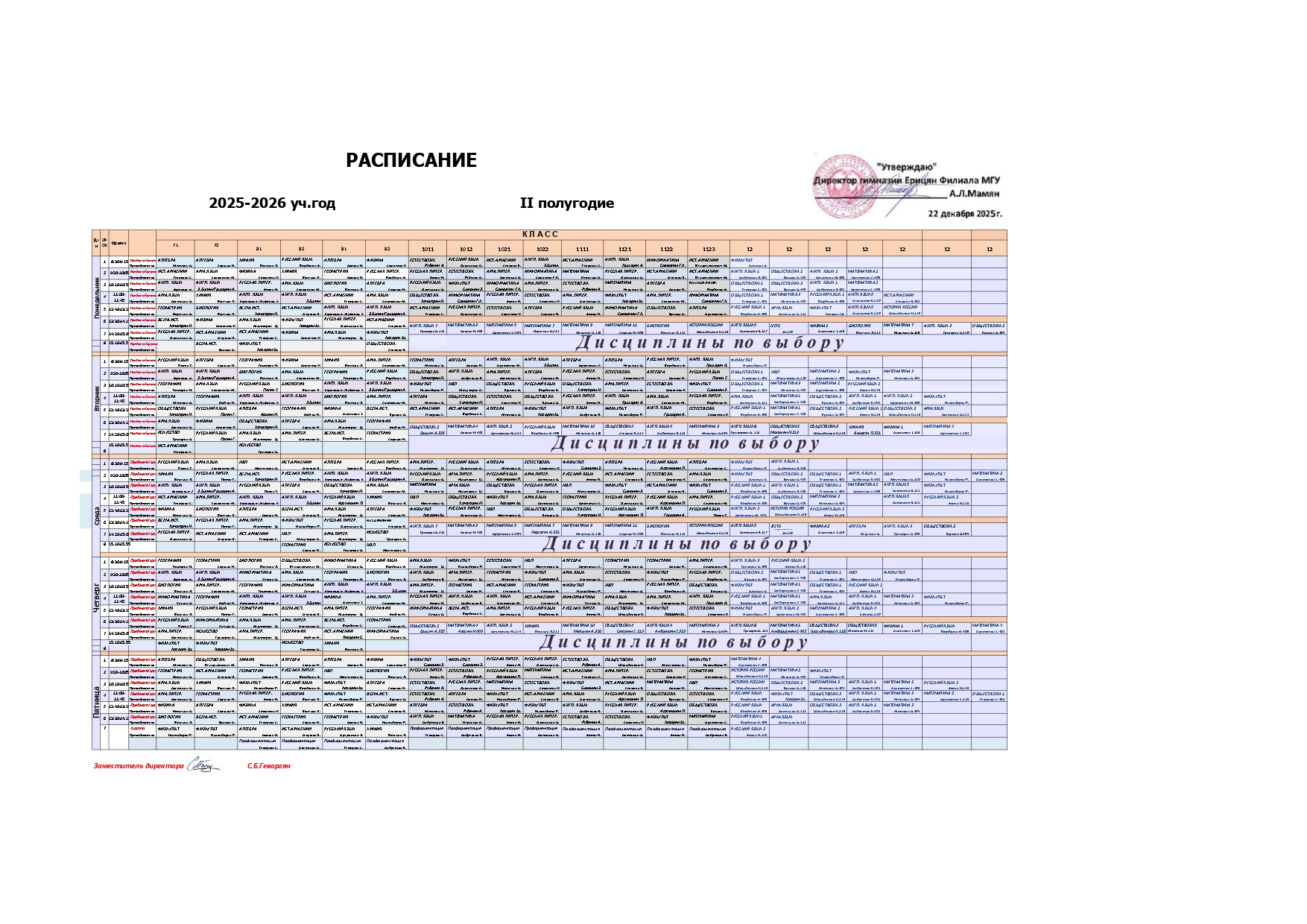 Расписание « Гимназия Ерицян Филиала МГУ